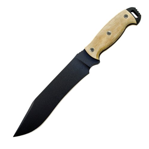 The Ranger Series Night Stalker Knife features 5160 steel and black texture powder coated blades. Comes standard with MOLLE compatible black nylon sheath with edge protecting hard plastic insert. Blade Finish: Black texture powder coated. Blade Length: 6". Blade Thickness: 25". Blade Type: Fixed Blade (full tang). Handle: Tan Micarta. Material: 5160 Steel. Overall Length: 11.75".